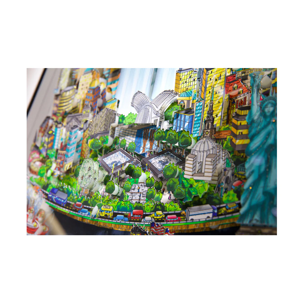 3D pop artist Charles Fazzino created this artwork in 2021 especially for the 9/11 Memorial & Museum. Known for his vibrant depictions of New York City, Fazzino sought to preserve the visual history of the events of 9/11 while at the same time celebrating the resilience of his beloved hometown, its people, and an entire country.